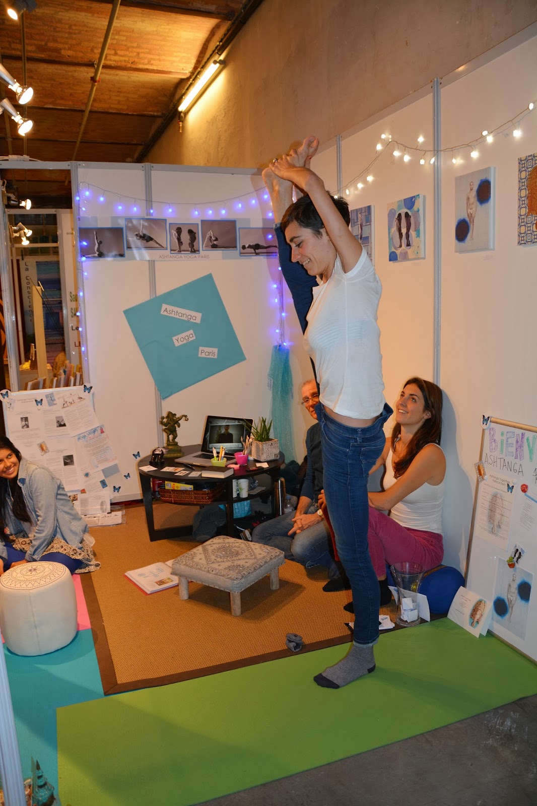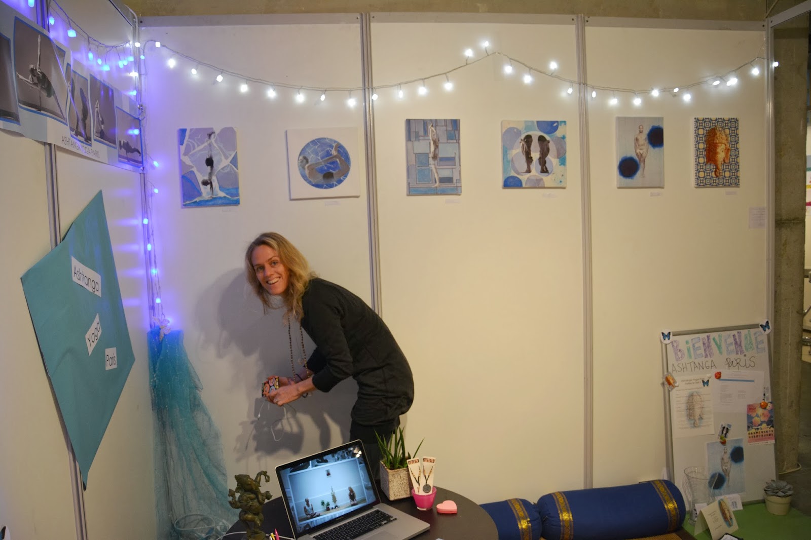 It was the Paris Yoga Festival this past weekend. Gerald and I were teaching at it, like last year, but in addition, this year we rented a stand to build a little AYP home for the weekend!